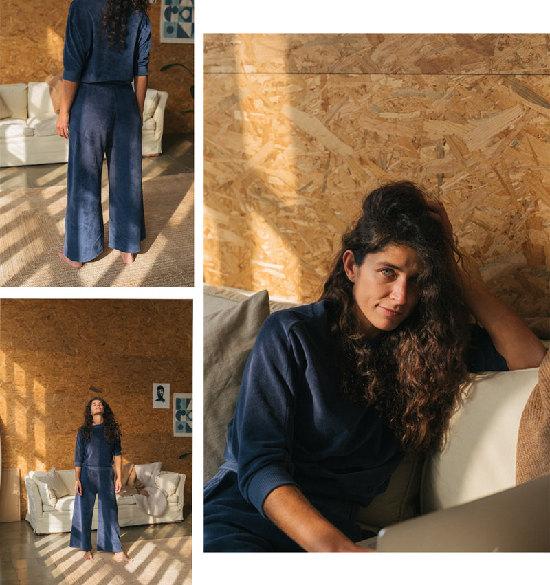 Our loungewear sits between comfort and elegance, like the clean lines of our wide-leg trouser: Soto.