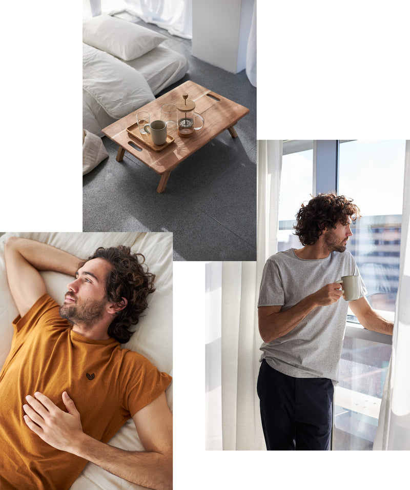 Això elimina les molèsties de preparar-se. Potser podríeu triar el nostre Funen de pedra clara i el Texel de color vi negre, fets de teixits ecològics que minimitzen els residus.