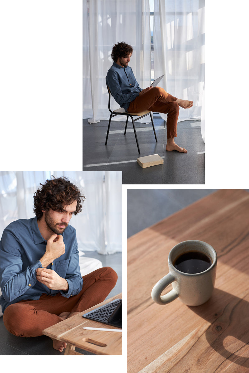 Minimalisme: on cada objecte serveix per a múltiples finalitats. Com una petita taula de fusta, el lloc per prendre el cafè al matí i la reunió a la tarda. Alguns minimalistes fins i tot treballen des del seu armari!