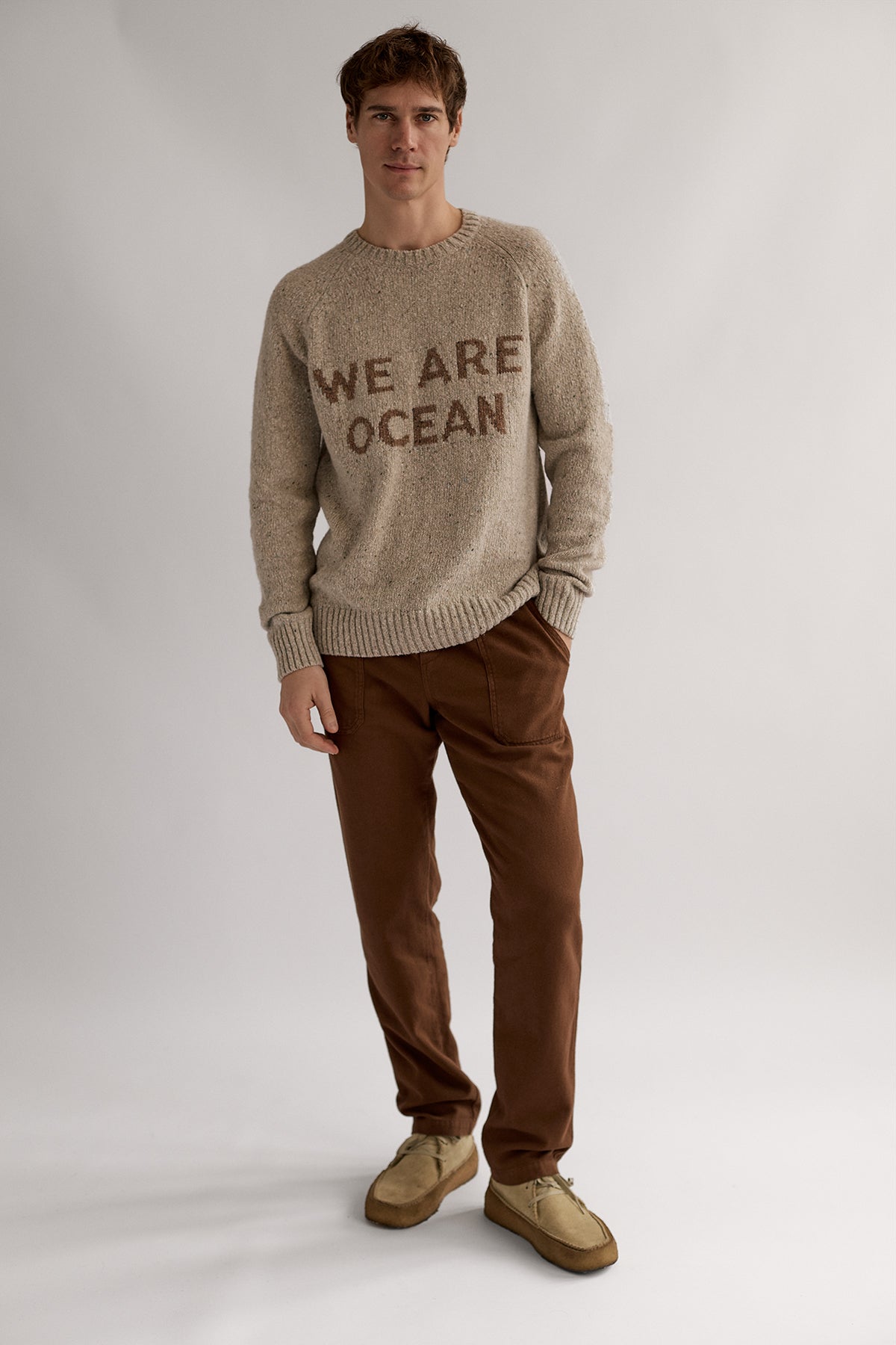 This nep-infused sustainable knit is crafted from a blend of 100% recycled materials, helping to cut waste, reduce impact, and give real credence to the slogan, WE ARE OCEAN.