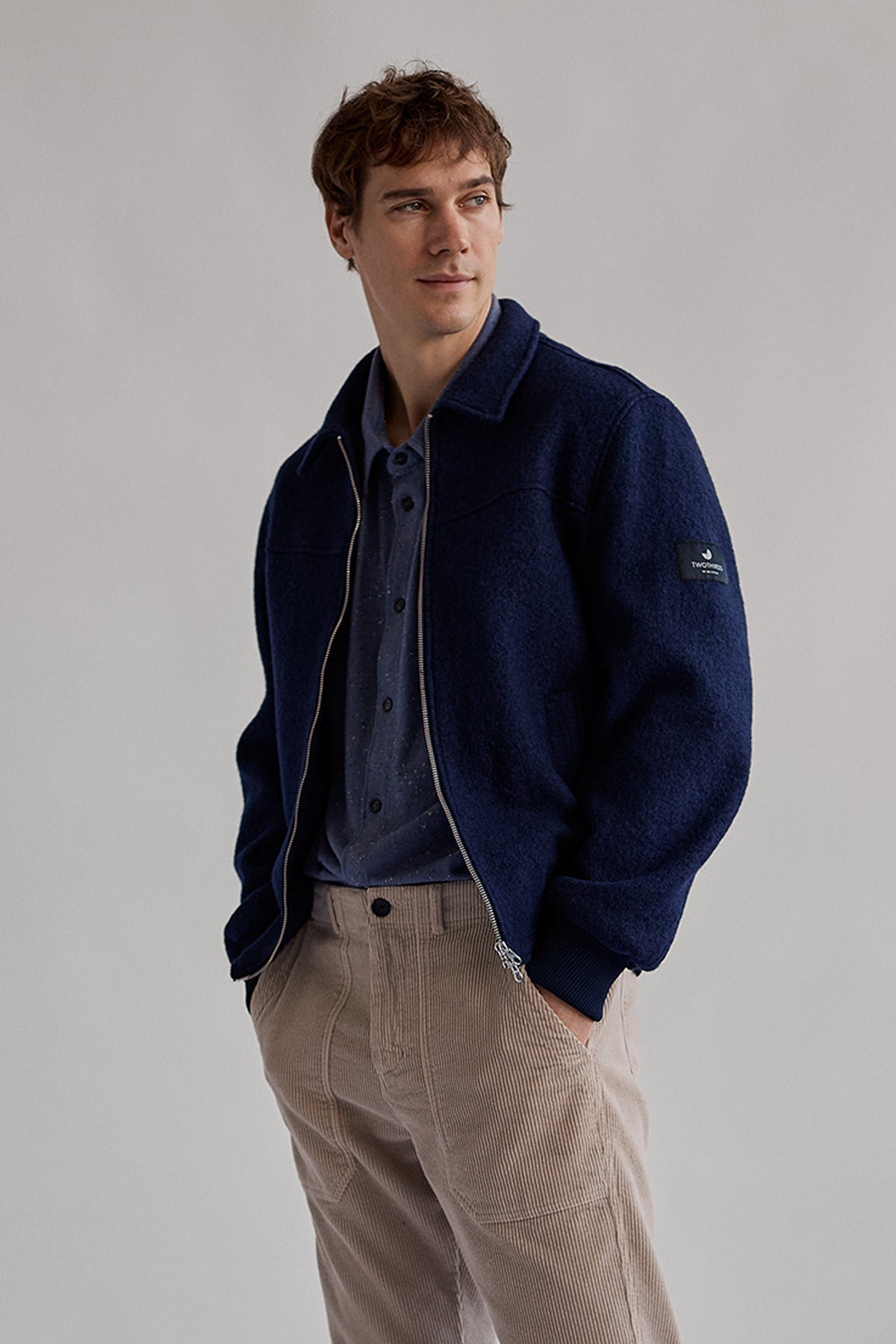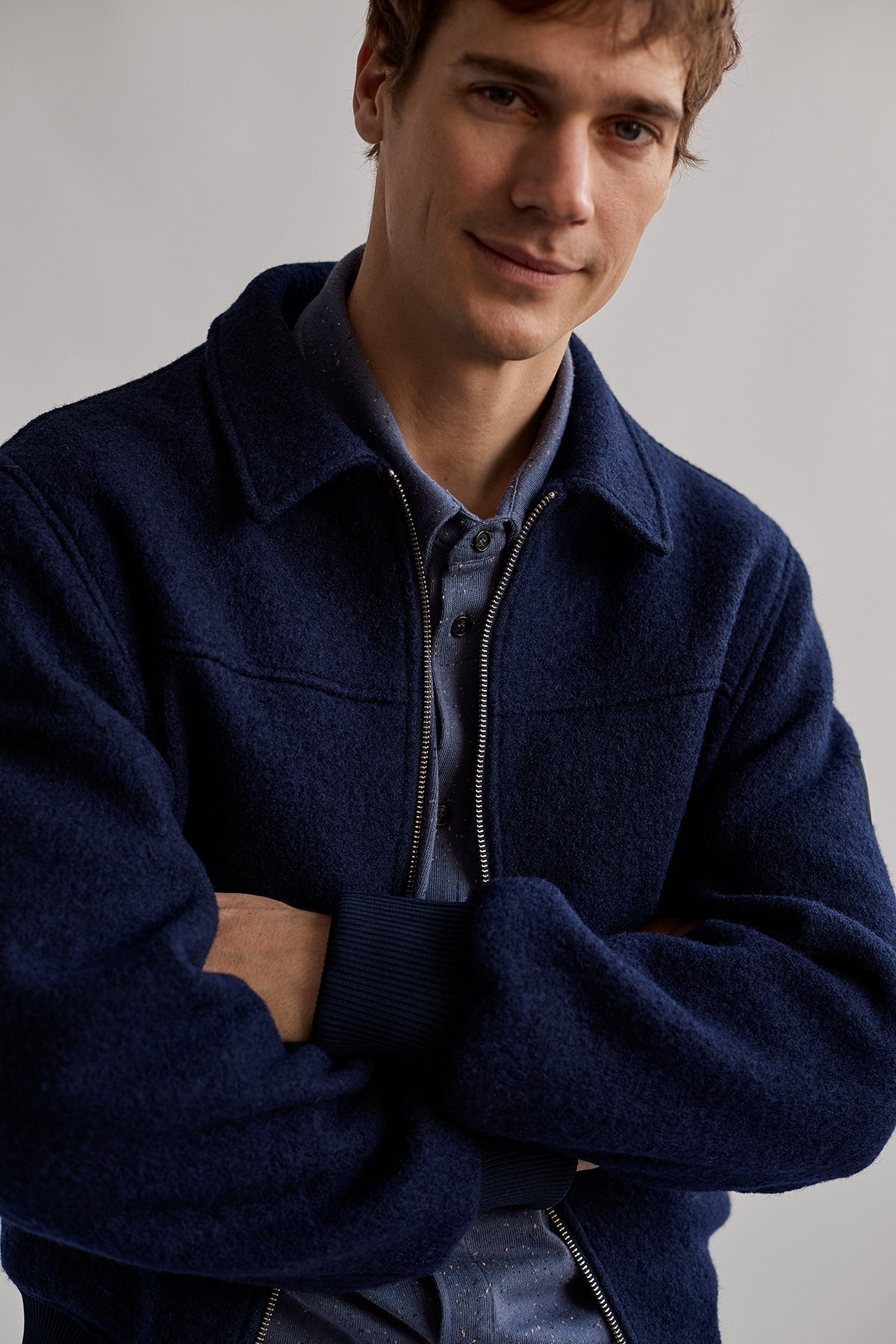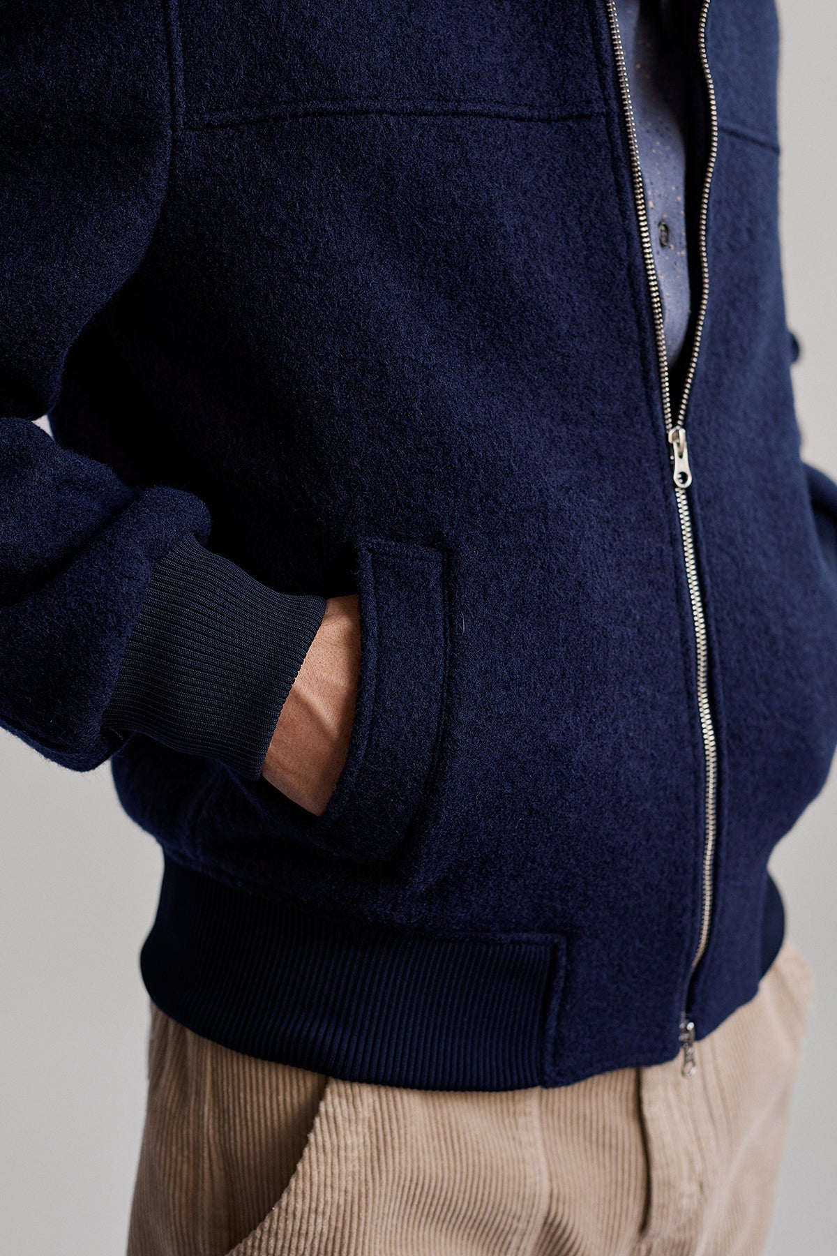 Never knew you needed a durable boiled wool bomber in your sustainable wardrobe? Now you do! The Enniscrone ethical jacket comes with a slightly cropped cut and ribbed edges.