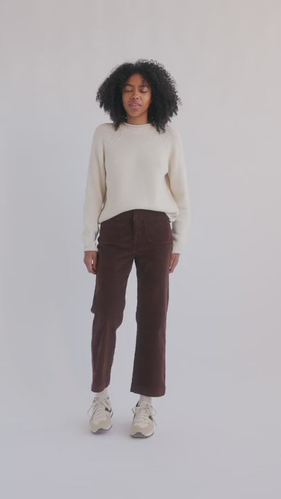 An innovative flared body means the Gleinbeigh is effortlessly on trend. Raised raw edges add yet another point of difference, replete with raglan sleeves and fully fashioned shoulder seams.