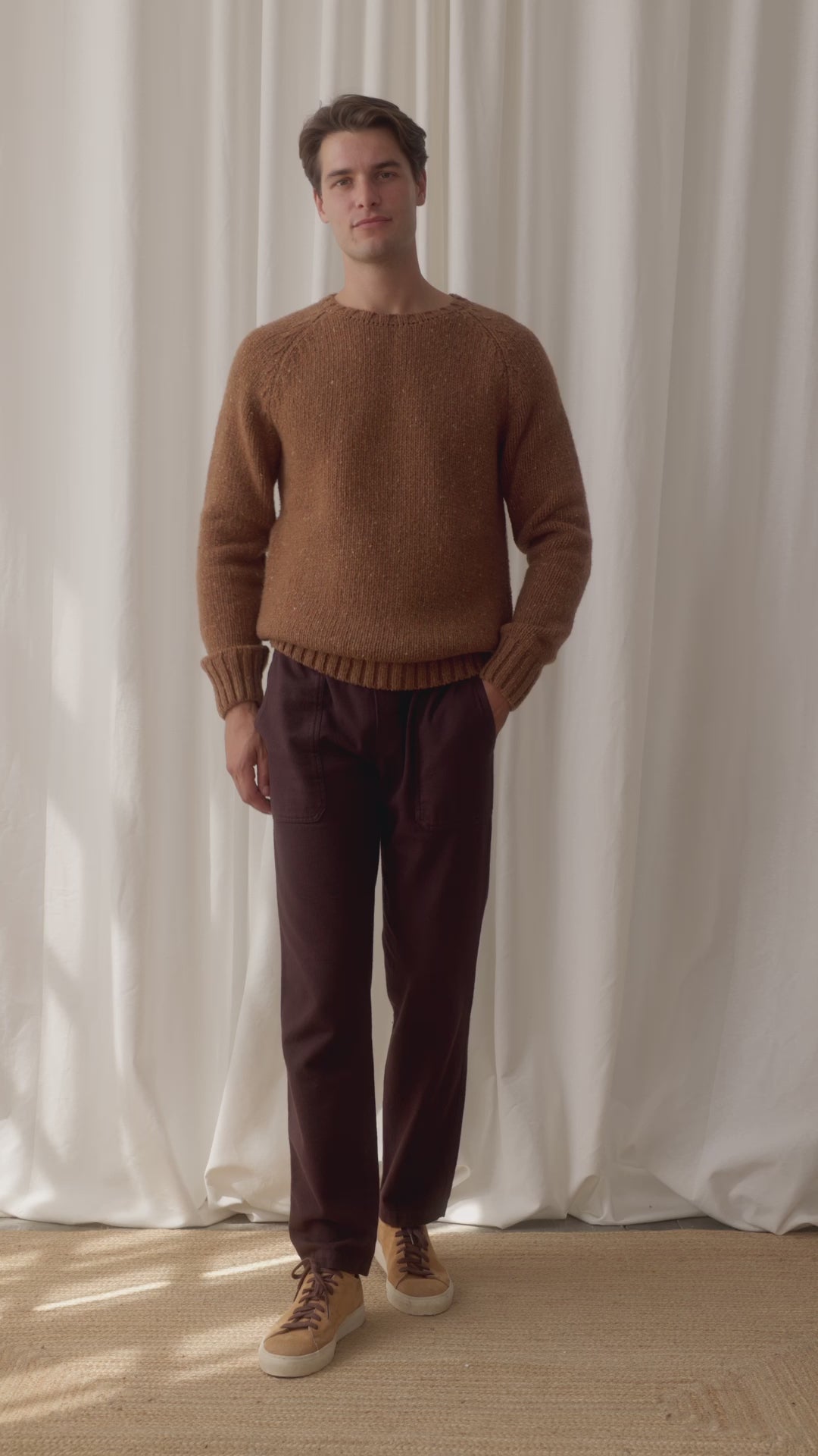 The Jurmo’s thick merino wool can always be turned to when warmth and comfort are priorities. It can also be dressed up, with the help of a pair of our more formal sustainable pants.