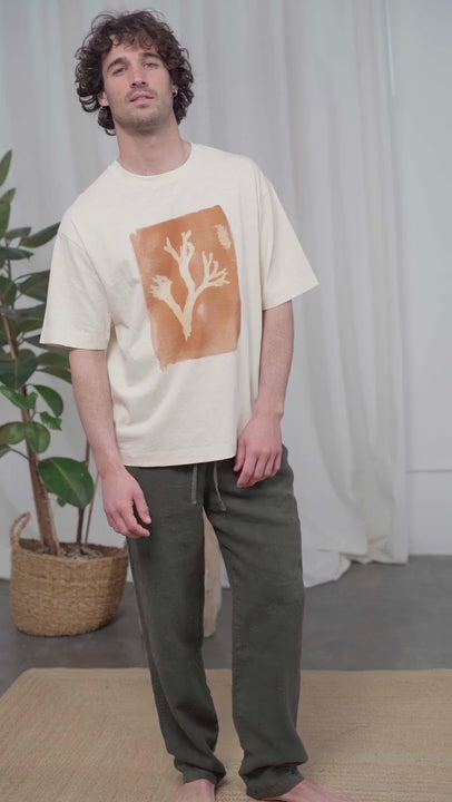 Our Art Director Emil Kozak used a real piece of seaweed from his native Denmark to create the Pupukea t-shirt. He dried it in the Spanish sun, as part of a Cyanotype photography technique.