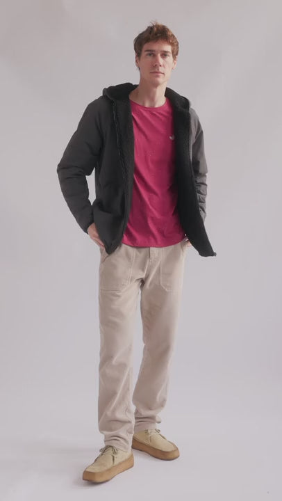A technical hooded jacket with durable ripstop fabric on the outside and a soft sherpa fleece made from recycled materials on the inside, the Hakluyt is a cosy post-surf companion.