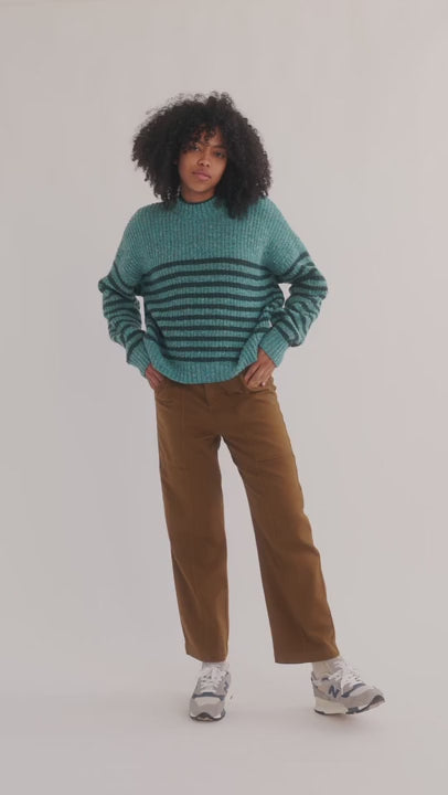 This ethical knit’s super soft yarn comes from the famous Donegal woollen mill in the Irish village of Kilcar, a place steeped in artisan craftsmanship. Features an irresistible royal rib design!