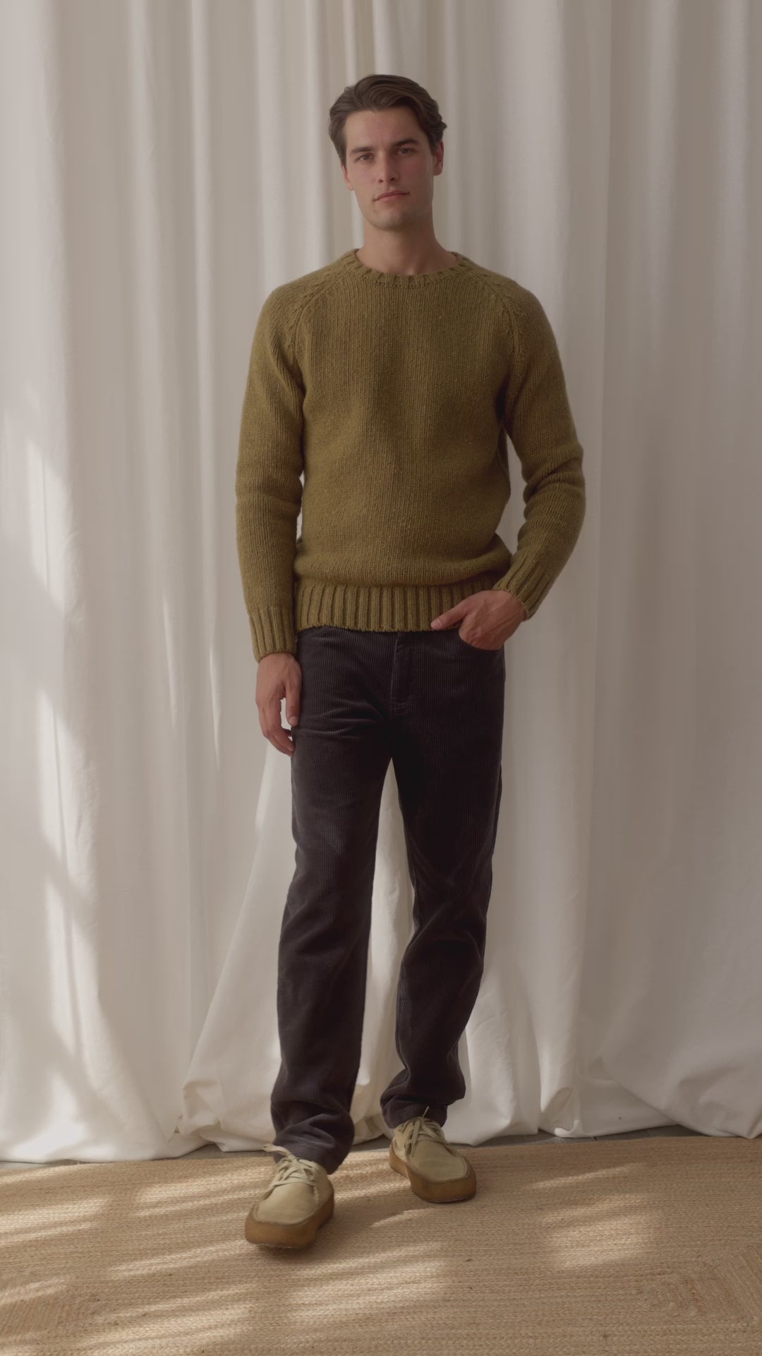 Die dicke Merinowolle von Jurmo ist immer eine gute Wahl, wenn Wärme und Komfort im Vordergrund stehen. Mit einer unserer formelleren, nachhaltigen Hosen kann man es auch eleganter tragen.