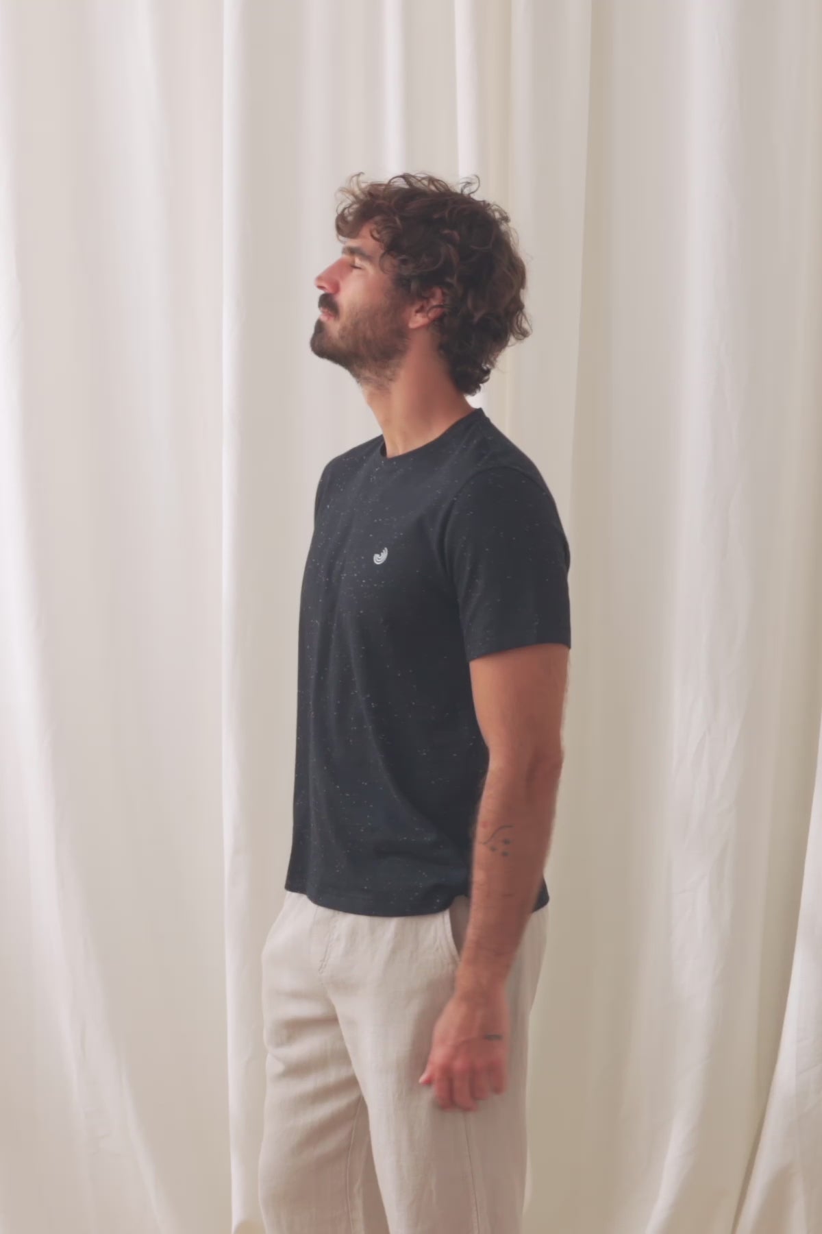 Dieses einfache Eco-T-Shirt hat eine normale Passform.