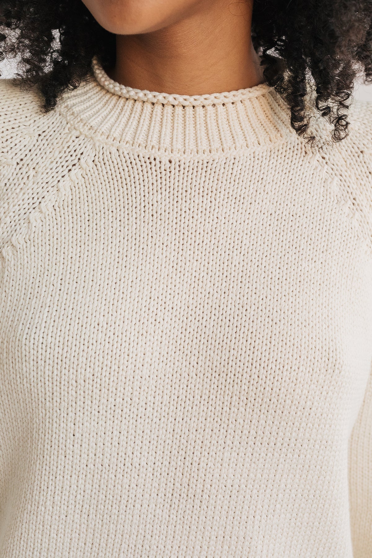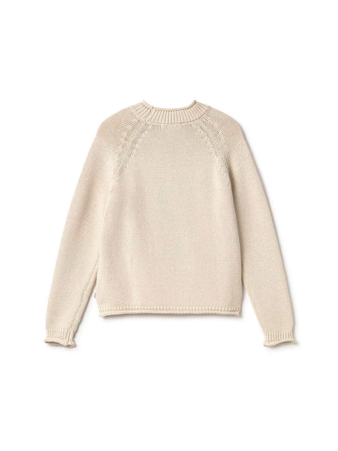 Mit seinem innovativen, ausgestellten Schnitt liegt der Gleinbeigh mühelos im Trend. Erhöhte, rohe Kanten setzen zusätzliche Akzente, ergänzt durch Raglanärmel und fully-fashioned Schulternähte.