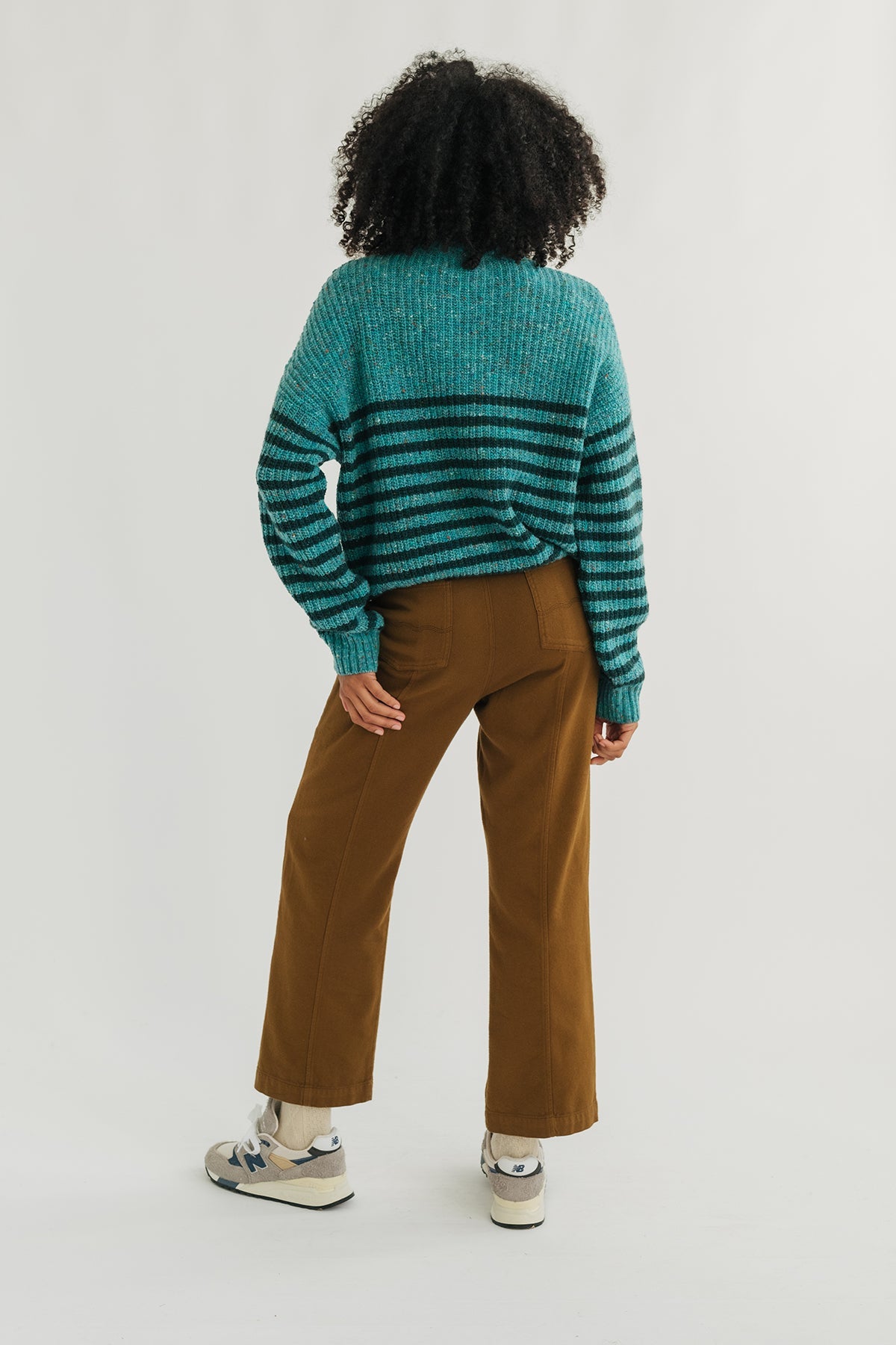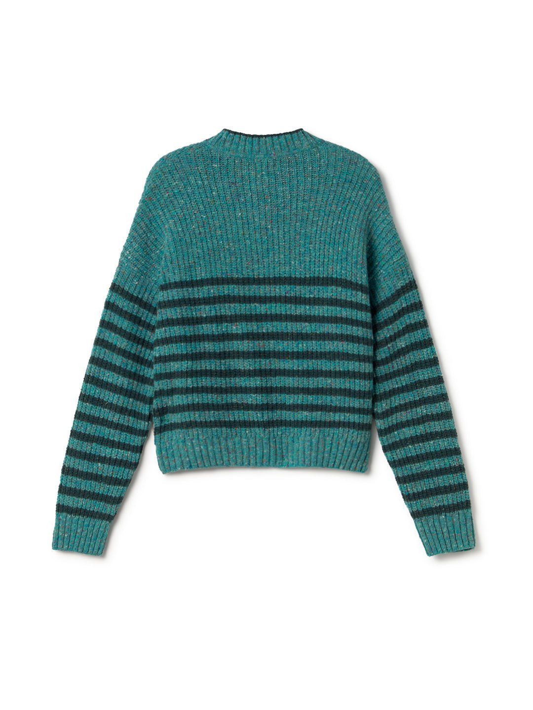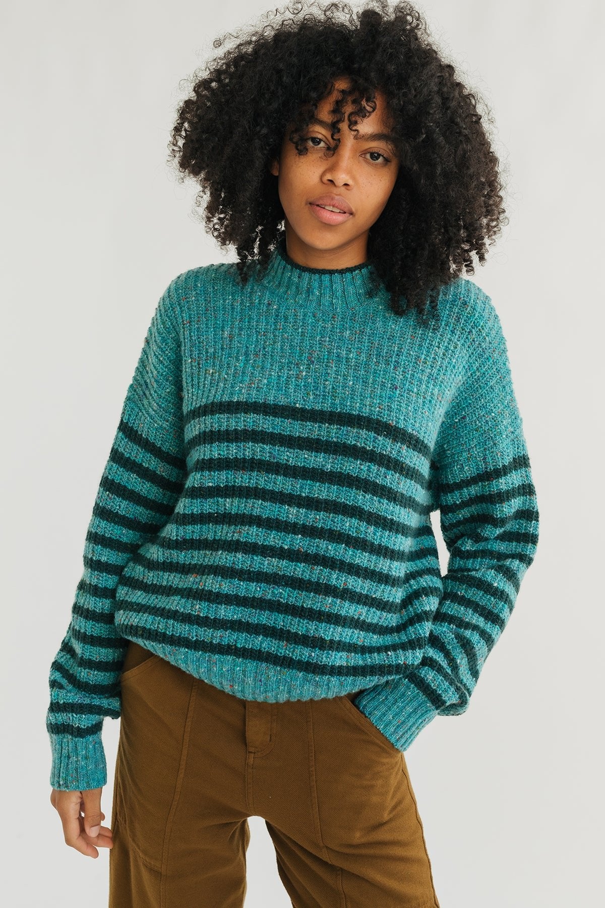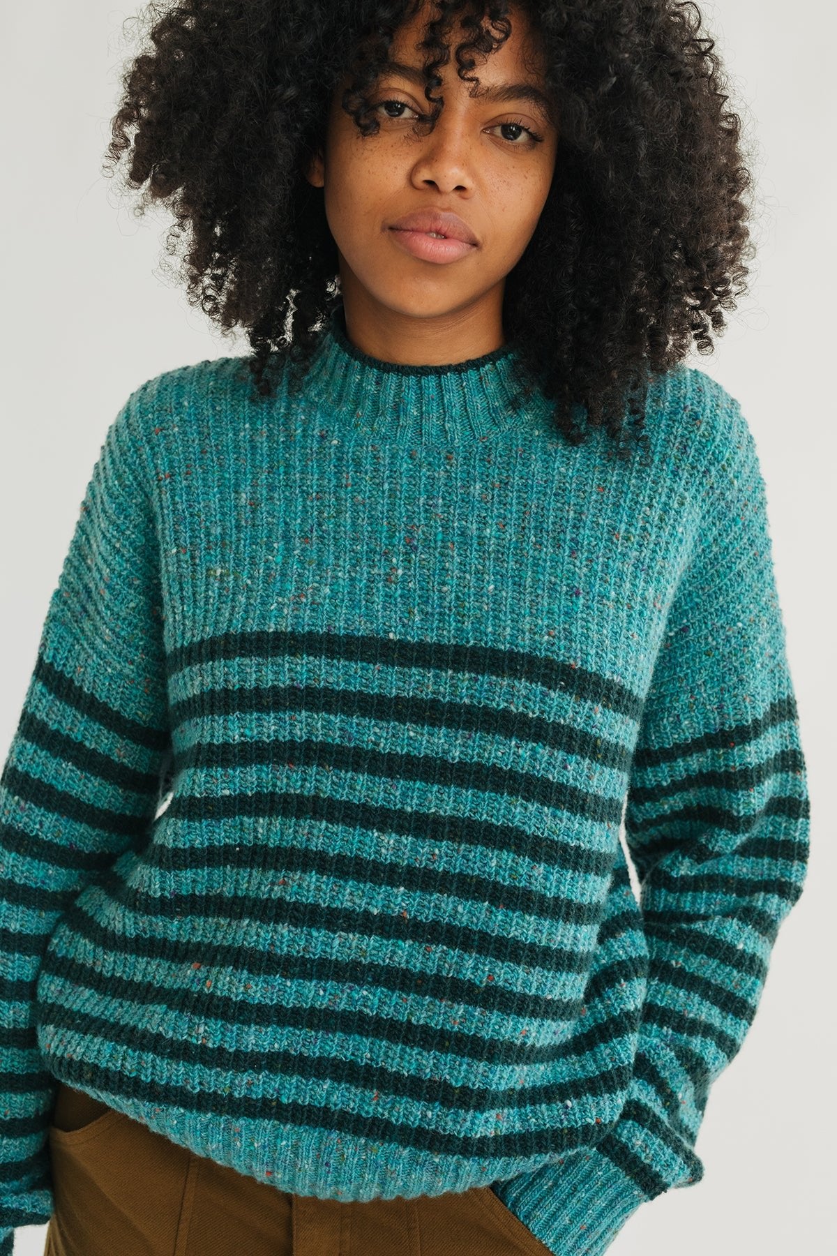 Das Garn dieses ethischen Strickstücks stammt aus der berühmten Donegal-Wollspinnerei im irischen Dorf Kilcar, einem Ort, der von handwerklichem Können geprägt ist. Es verfügt über ein unwiderstehliches königliches Rippenmuster!