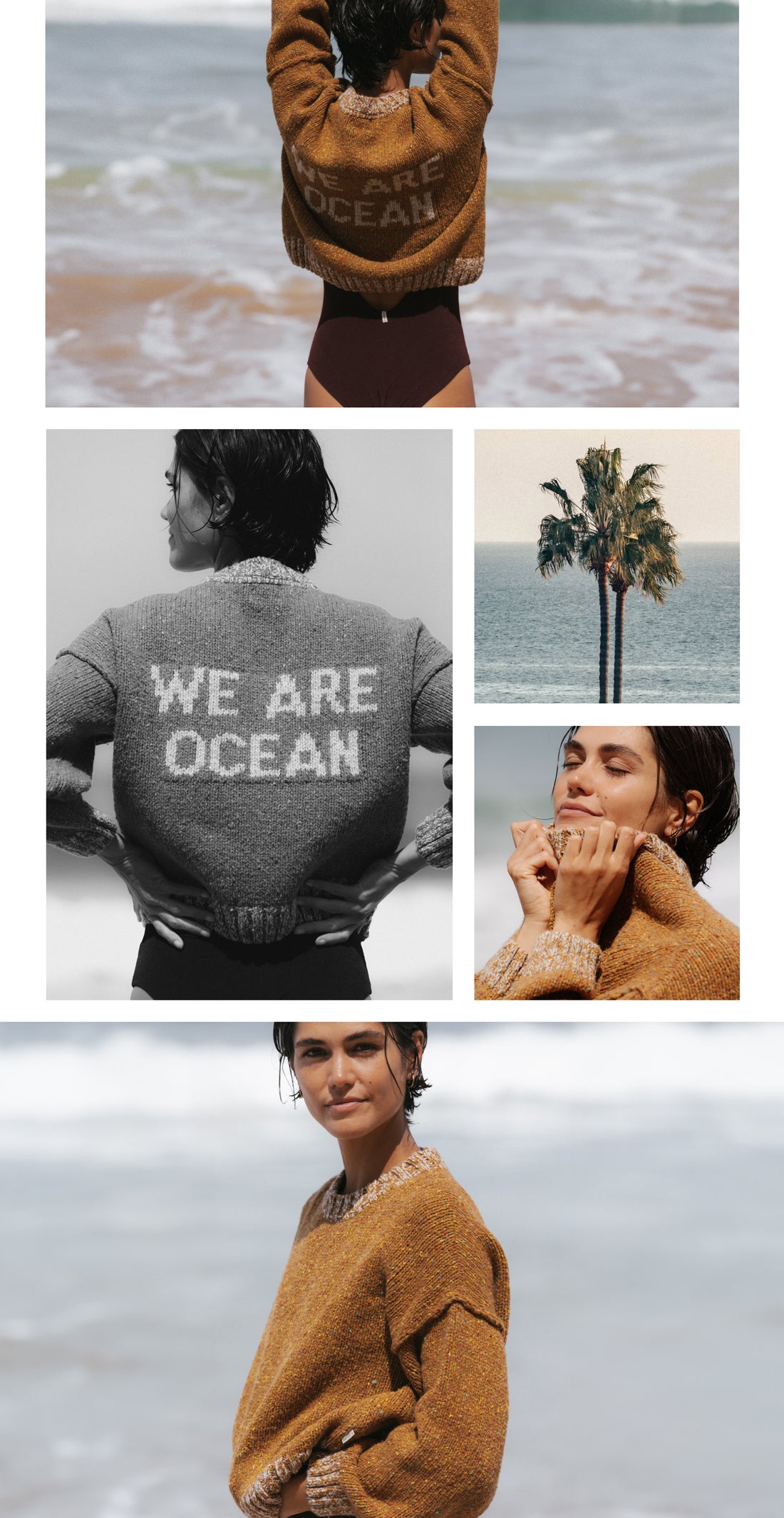 Unser ikonischer Sirenengesang „WE ARE OCEAN“ klingt wahrer denn je. Seine zugrunde liegende Botschaft inspiriert zu nachhaltigen Strickwaren aus hochwertigem italienischem Garn aus recycelten Materialien.