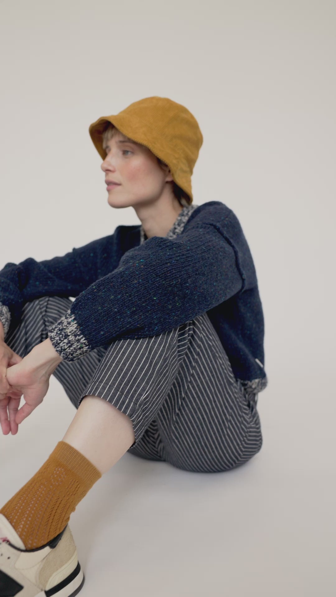 Dieses aus feinstem, nachhaltigem italienischen Garn gefertigte Strickstück hat auffällige, ecrufarbene Säume und bezaubernde, bunte Sprenkel überall. Unser Slogan „WE ARE OCEAN“ ist auf der Rückseite zu sehen.
