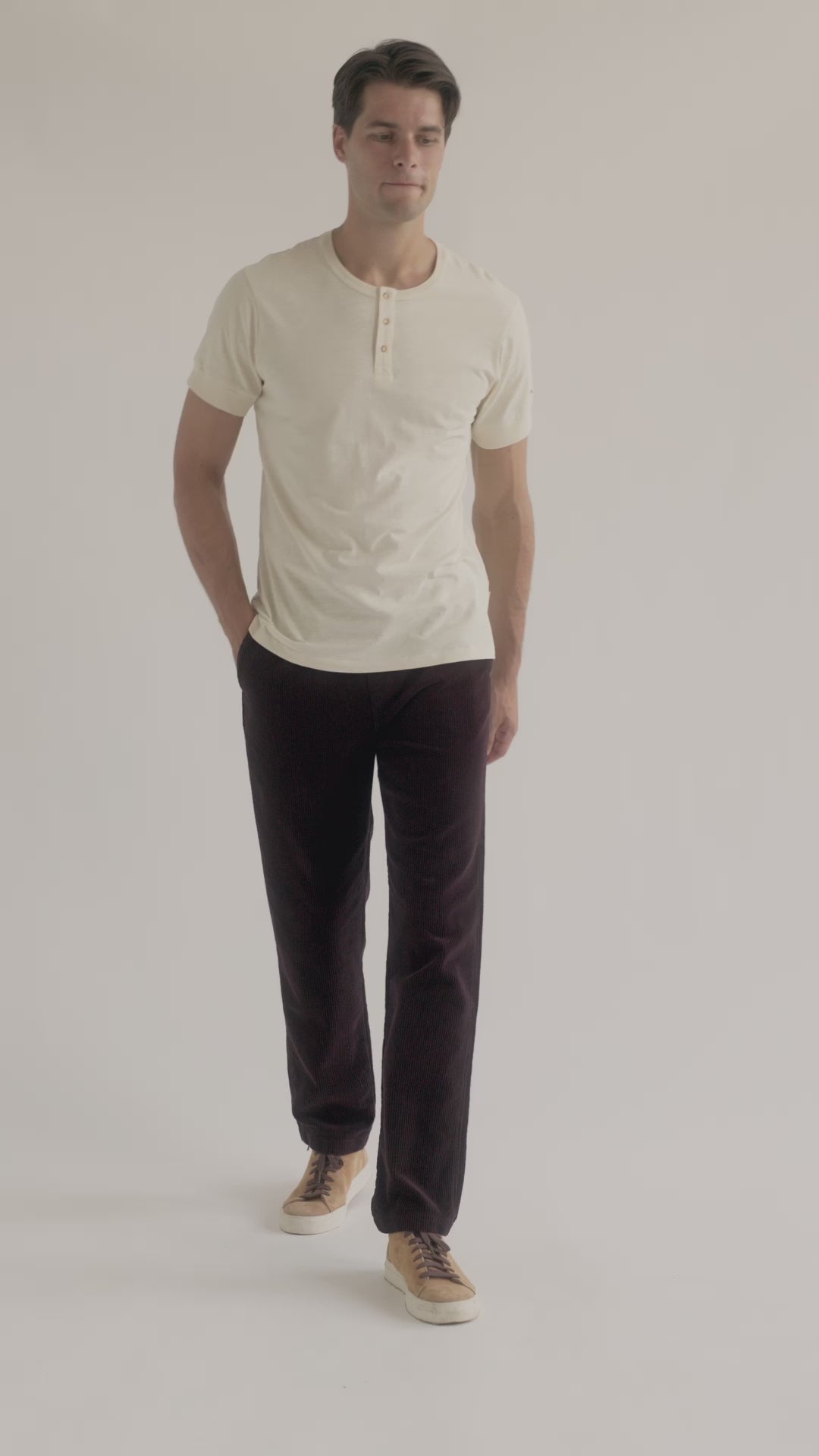 Unser Ministers-T-Shirt ist eine Abwandlung des Bäcker-T-Shirts mit tunesischem Kragen und kombiniert die Stickerei „We Are Ocean“ auf dem Ärmel mit gerippten Säumen und drei nachhaltigen Corozo-Knöpfen.
