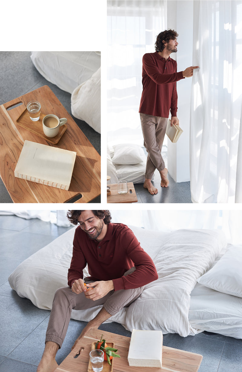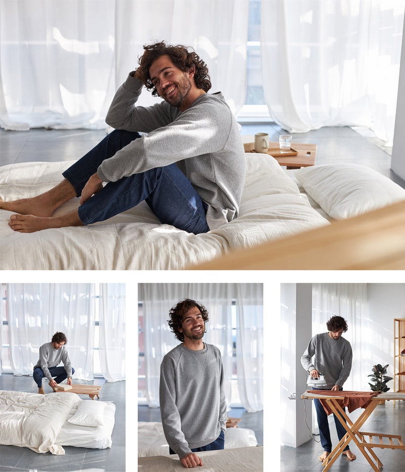 This takes the hassle out of getting ready. Perhaps you’d pick out our light stone Funen and wine red Texel, made of ecological fabrics that keep waste to a minimum.