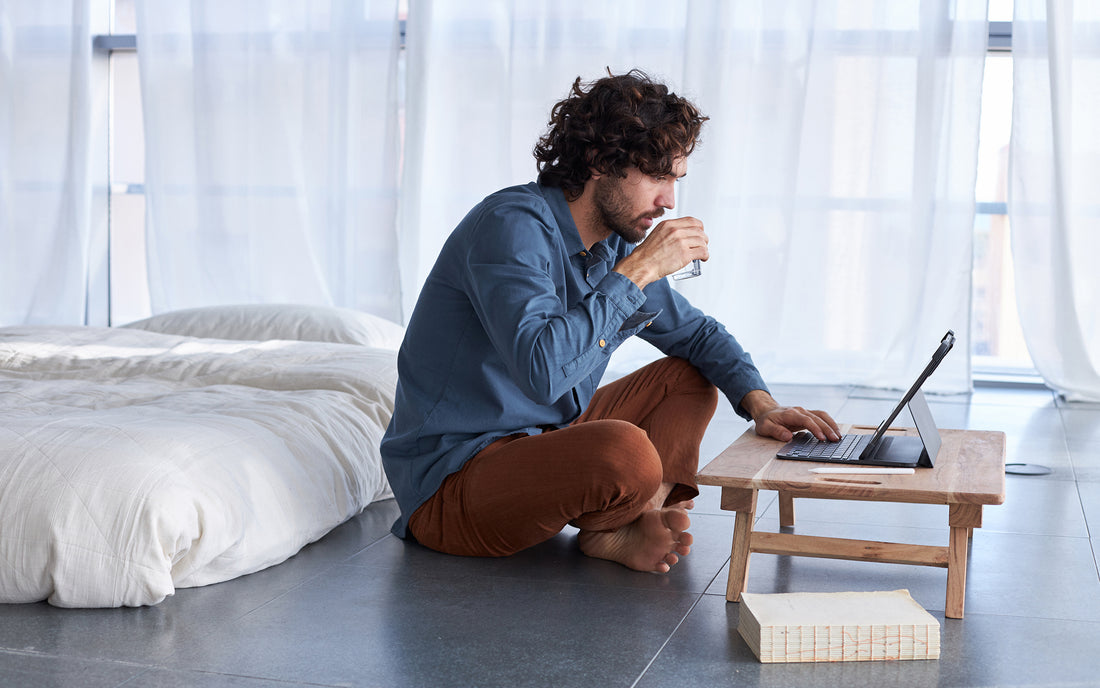 Minimalismus: Jedes Objekt dient mehreren Zwecken. Wie ein kleiner Holztisch – der Ort, an dem du morgens deinen Kaffee und nachmittags deine Besprechung genießen kannst. Manche Minimalisten arbeiten sogar von ihrer Garderobe aus!