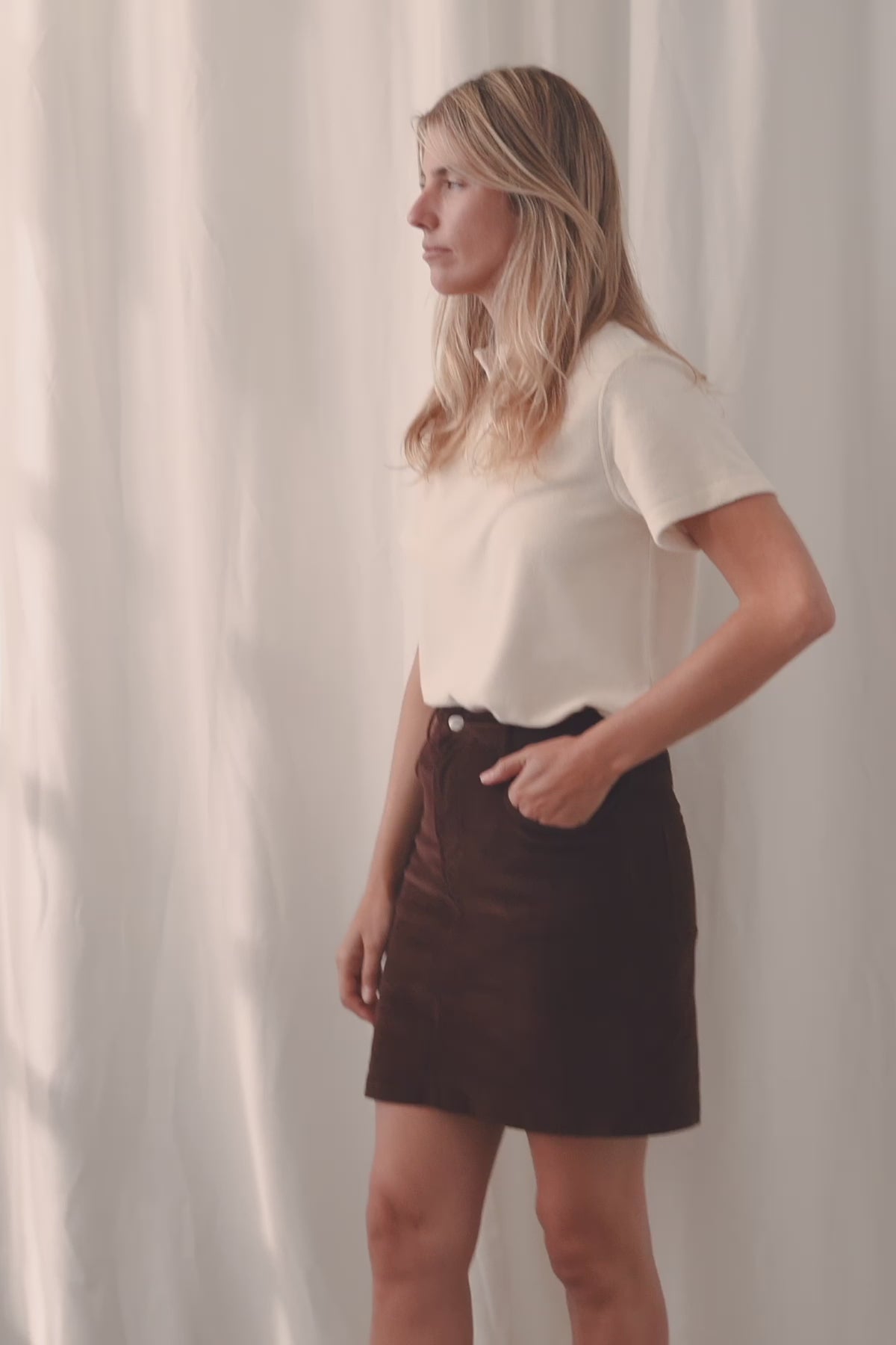 Ein Bleistiftrock, der das ganze Jahr über einen umweltfreundlichen Eindruck macht. Der Uvita passt perfekt zu übergroßen Strickwaren und Strumpfhosen. Es gibt zwei Vordertaschen und zwei Gesäßtaschen.