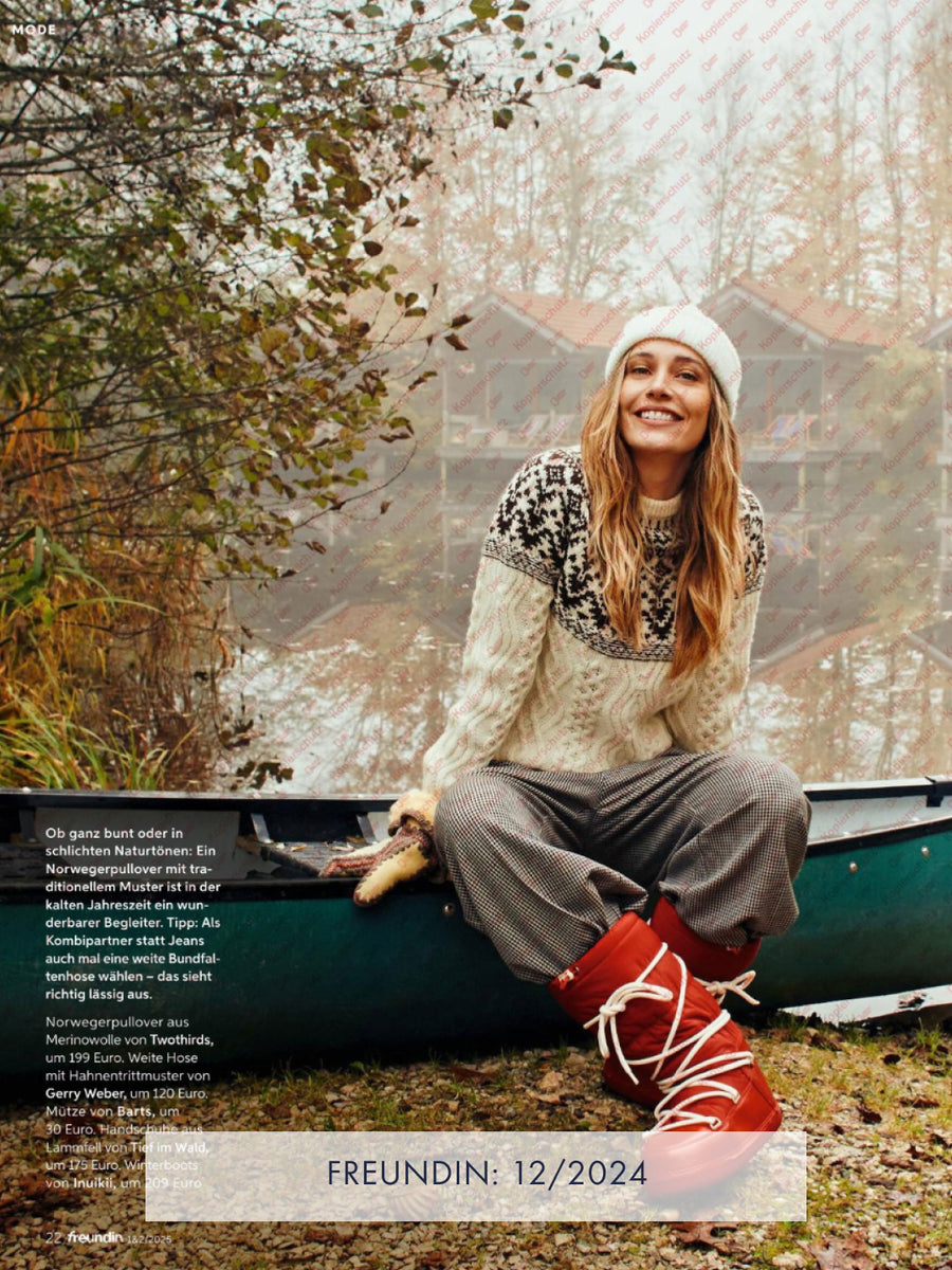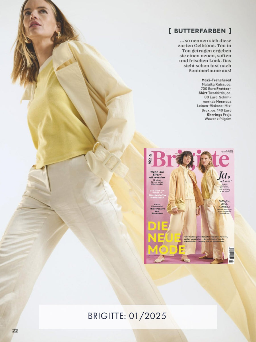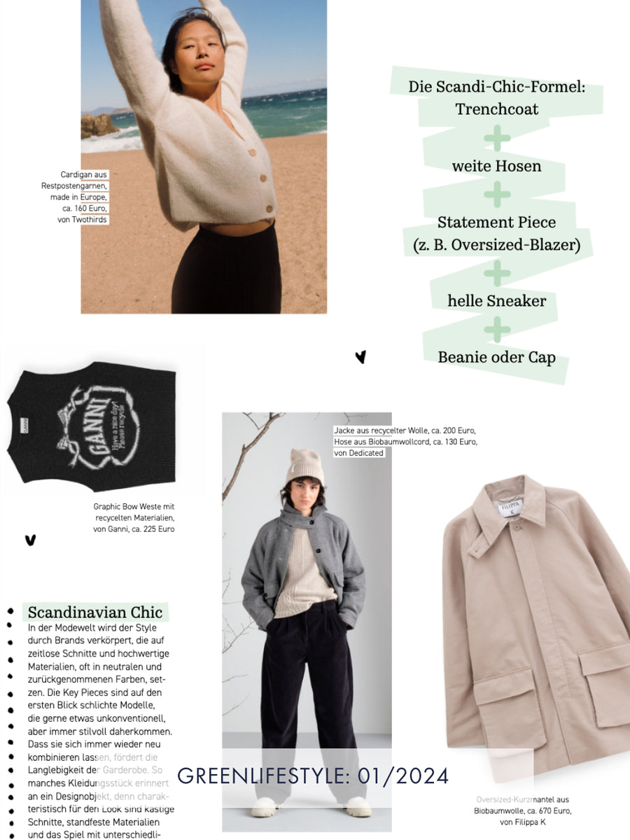 AW25/26 – NORTHERN TALES ist inspiriert von den Kunstwerken des verstorbenen Malers und begeisterten Seglers Karl Schwenke, Großvater von TWOTHIRDS-Geschäftsführer Lutz. Die Stücke erinnern an Segelboote, einheimische Küstenblumen, grüne Kupferdächer und blaues Wasser. Nachhaltigkeit ist in jedem Faden verankert. Zertifizierte Recycling- und Biomaterialien kommen überall zum Einsatz. Alle Wollgarne und -stoffe stammen aus lokaler europäischer Produktion und sind aus mulesingfreier Wolle hergestellt.