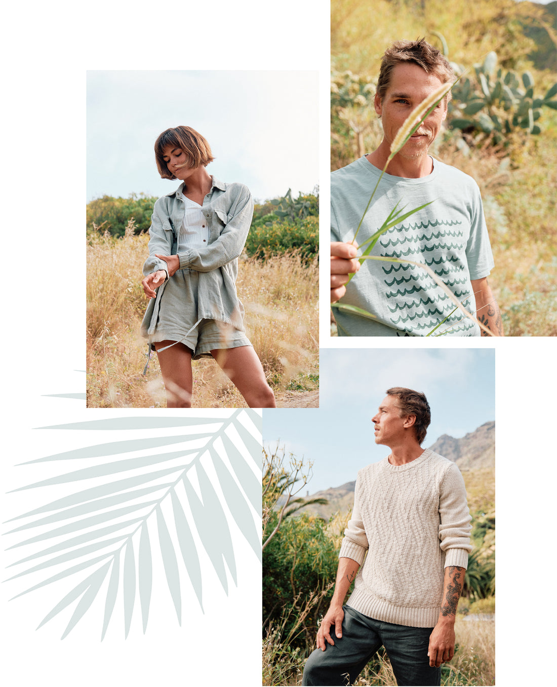 Nature looks good on you. We prove it in our new collection, composed of cool greens, lightweight natural fibres, and motifs from the environments we love best. For the complete experience, tune into our latest playlist while you browse.