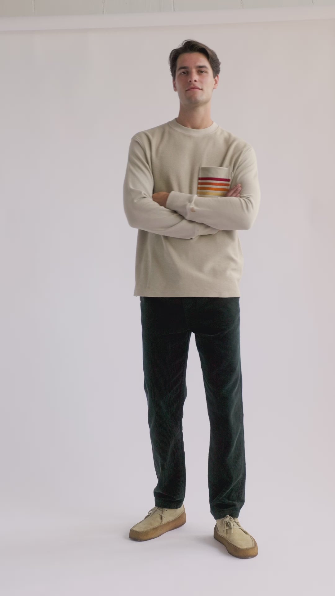 The Portaferry plays with reverse fabric so that its body, arms, and striped pocket all beautifully contrast. A comforting ribbed neckline and cuffs keep chills at bay.