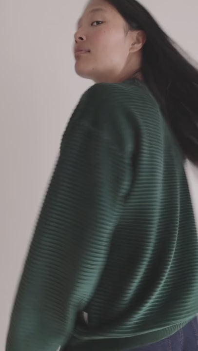 A velour sweatshirt that’s as soft as a cloud, it is both lightweight and beautifully cozy. Our cute embroidered whale swims on a striking vertical rib design.