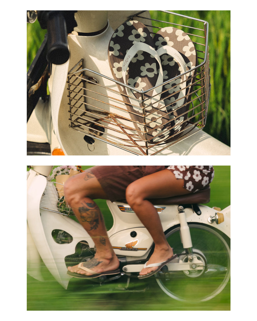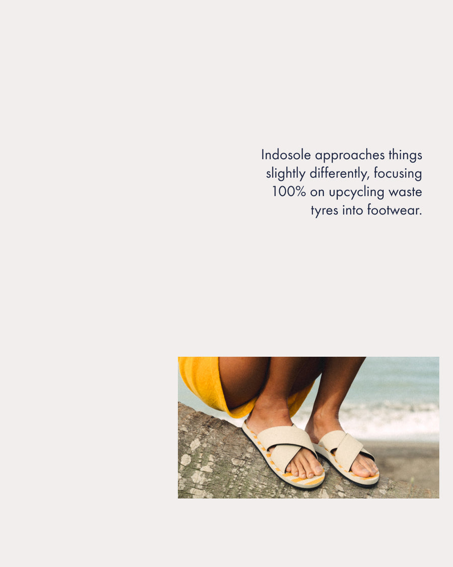Flip-flops or sandals are everywhere, but many have a sustainable twist, thanks to Indosole. Fascinated, we walked into their shop in the famous surf town of Uluwatu and instantly fell in love. From that day forth, we vowed to collaborate with them. Now that day is here!