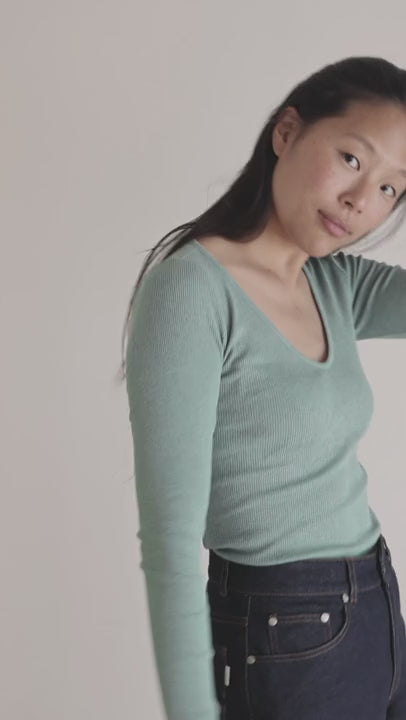 Our sustainable basics are famous for caring for you and the ocean in equal measure. The Tullan continues in the same vein, its vertical ribs and scoop neckline feeling like a second skin.