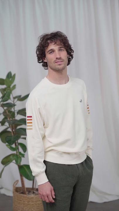 Combination of reverse and regular fabric are at play on the Waianae, a sustainable sweatshirt that’s made extra special by stripe highlights on the sleeve and an embroidered logo patch.
