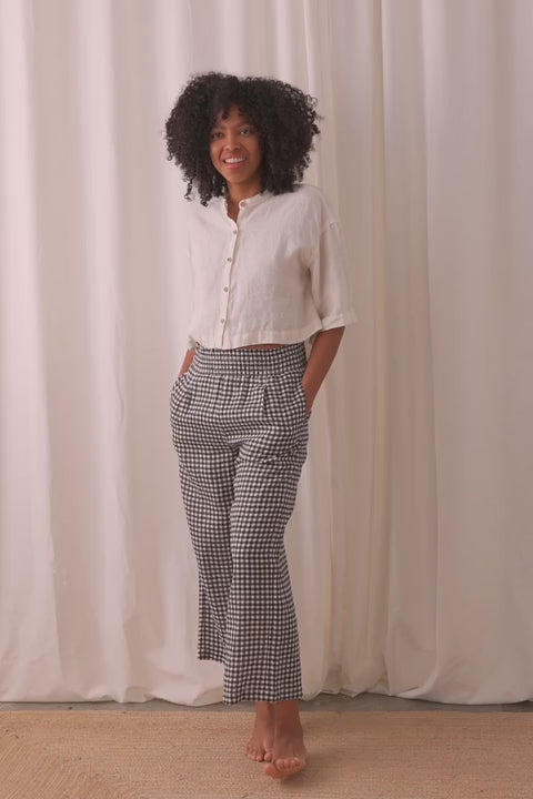 Sustainable linen pants are a pure pleasure to slip into when summer rolls around. The vichy patterned Marianne trousers come with a flexible rubber waistband and two side pockets.