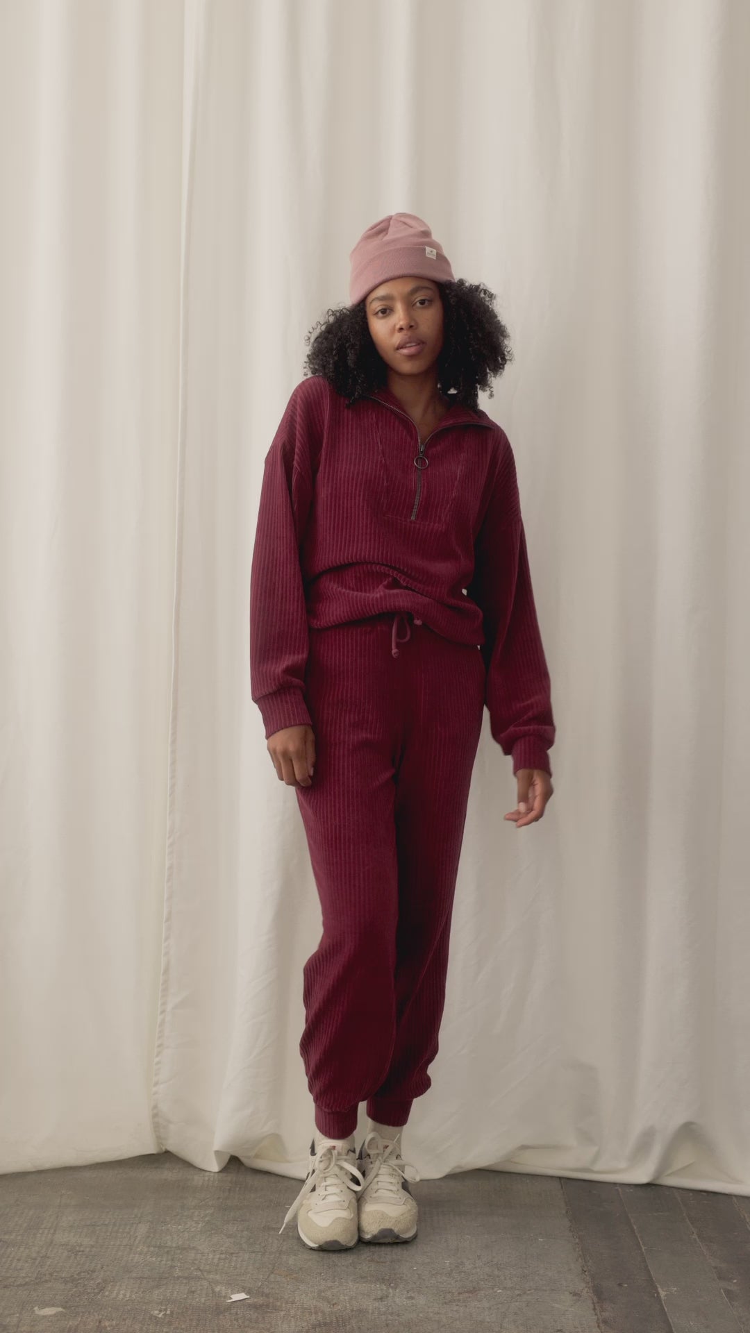 De riches et somptueuses côtes de velours forment ce qui pourrait être le pantalon durable le plus doux que nous ayons jamais créé. Il possède une taille et des chevilles élastiques, ainsi qu'un cordon de serrage.