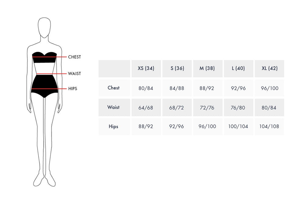 Actuellement, nous produisons des tailles XS - XL pour les femmes (EUR 34 - 42) et S - XL (EUR 36, 38, 40, 42, 44) pour les hommes, et nous suivons les tailles standard européennes.