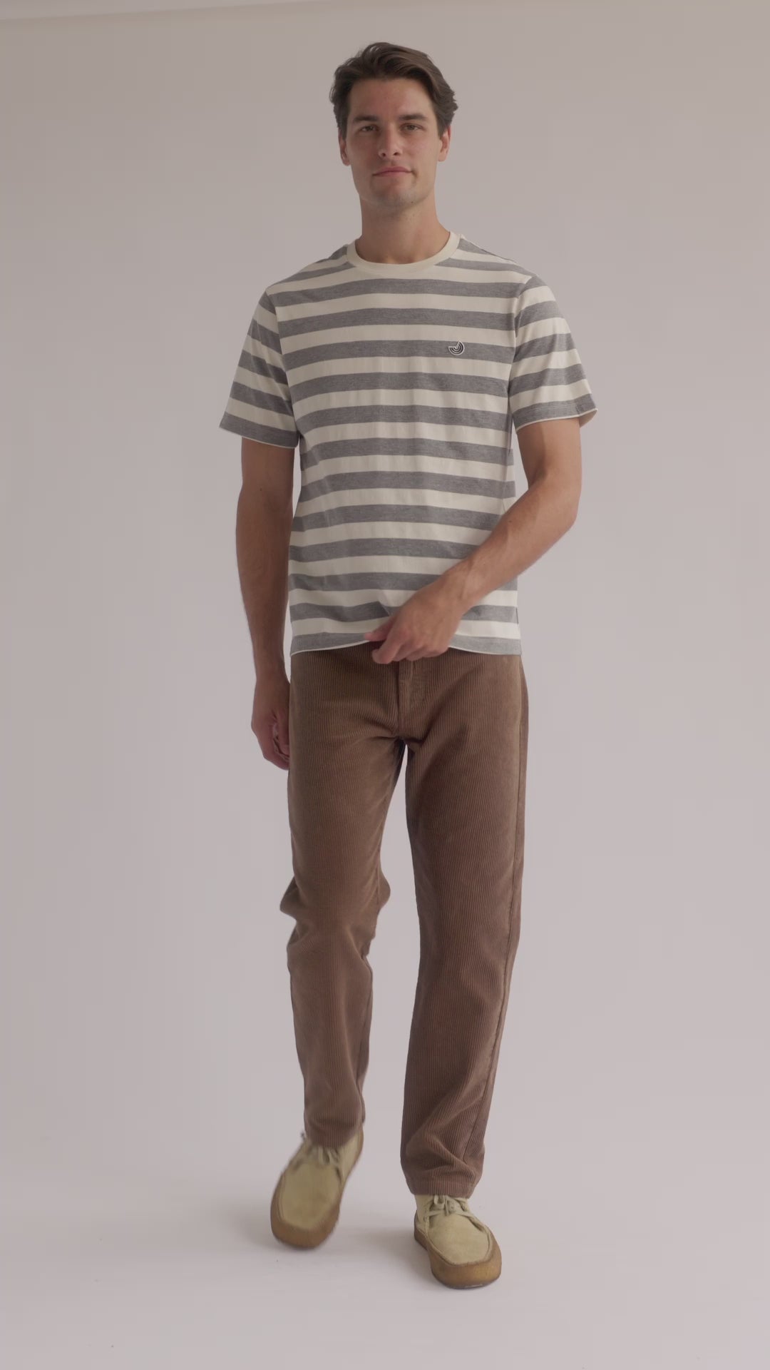 Un tissu en coton bio, de douces rayures et notre logo brodé, voici ce qu'il faut pour créer le Rathmullan. C'est déjà un grand favori ici au siège TWOTHIRDS !