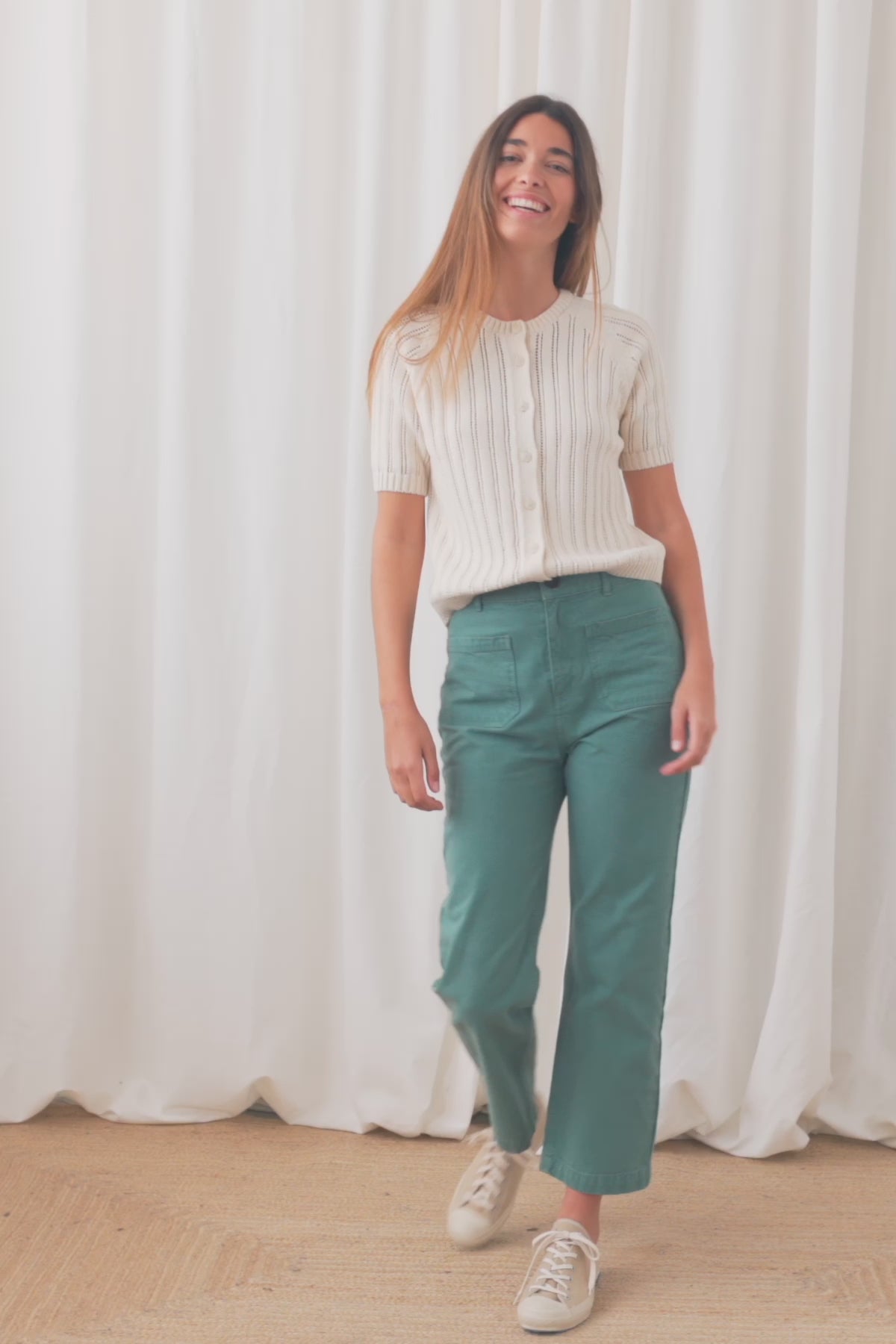 Un tricot ajouré, des manches raglan et des bords élastiques forment un cardigan mignon avec un M majuscule. En partie fabriqué à partir de textiles post-consommation recyclés.
