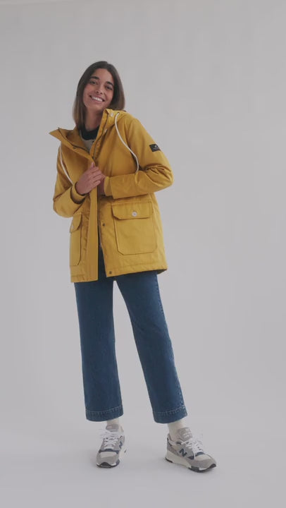 Un design à col montant avec un cordon de serrage en coton bio emprisonne la chaleur créée par cette superbe parka en toile. Une capuche douillette, une patte de boutonnage zippée et une doublure en polaire sherpa protègent des éléments.