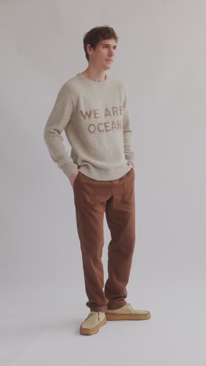 Ce tricot durable infusé de nep est fabriqué à partir d'un mélange de 100% de matériaux recyclés, contribuant à réduire les déchets, à diminuer l'impact et à donner une véritable crédibilité au slogan, WE ARE OCEAN.