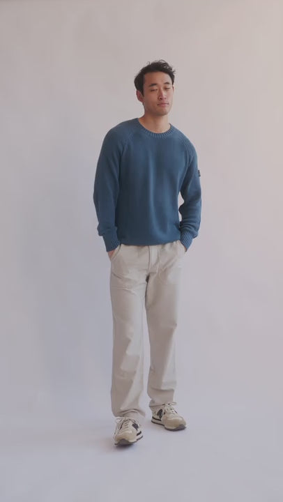 Un tricot discret, mais un pur plaisir à enfiler chaque jour, le Tortuga est relativement léger, doté de manches raglan et d'une étiquette de la marque sur la manche gauche.