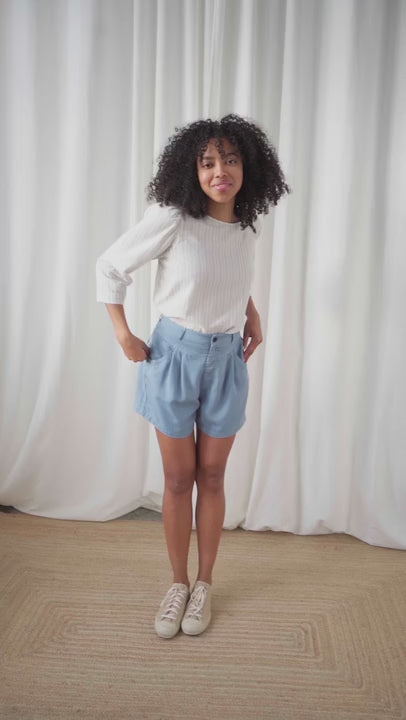 Voici le Hana ! Elle deviendra rapidement ta meilleure amie ce printemps/été. Découvre son tissu français léger et à faible impact, ses épaules froncées et ses manches trois-quarts fluides.