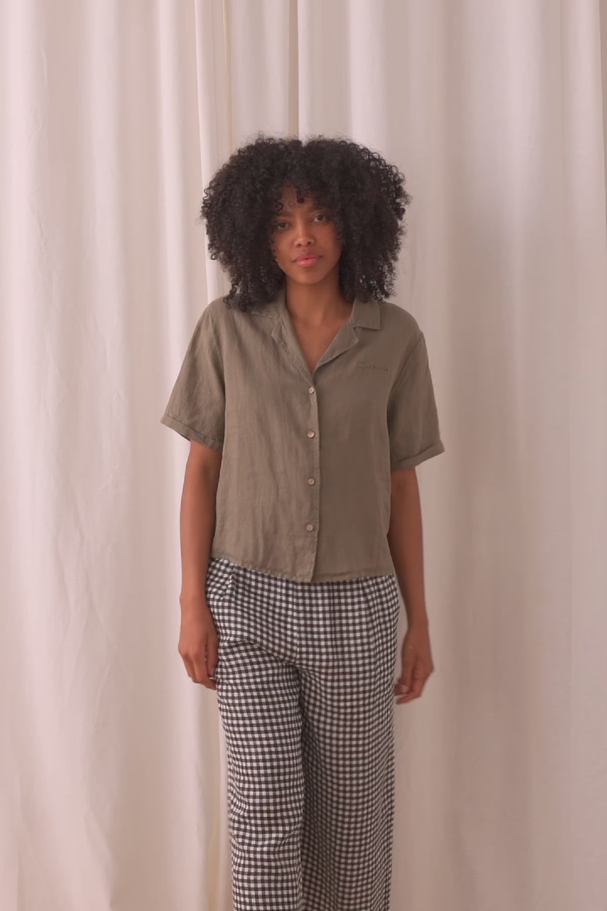Le lin est le tissu idéal pour le printemps ou l'été, il te garde au frais et à l'aise quelle que soit les températures. La Rano est dotée de manches retroussées et d'une broderie « Twothirds ».