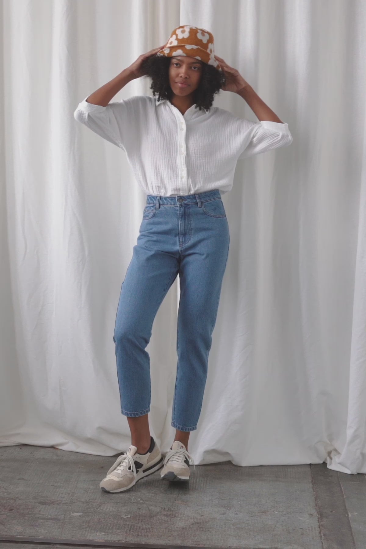 Une chemise décontractée, fabriquée en mousseline bio agréable sur la peau. Conçue avec 12 boutons en corozo, un col standard et des manches avec un ourlet cousu.