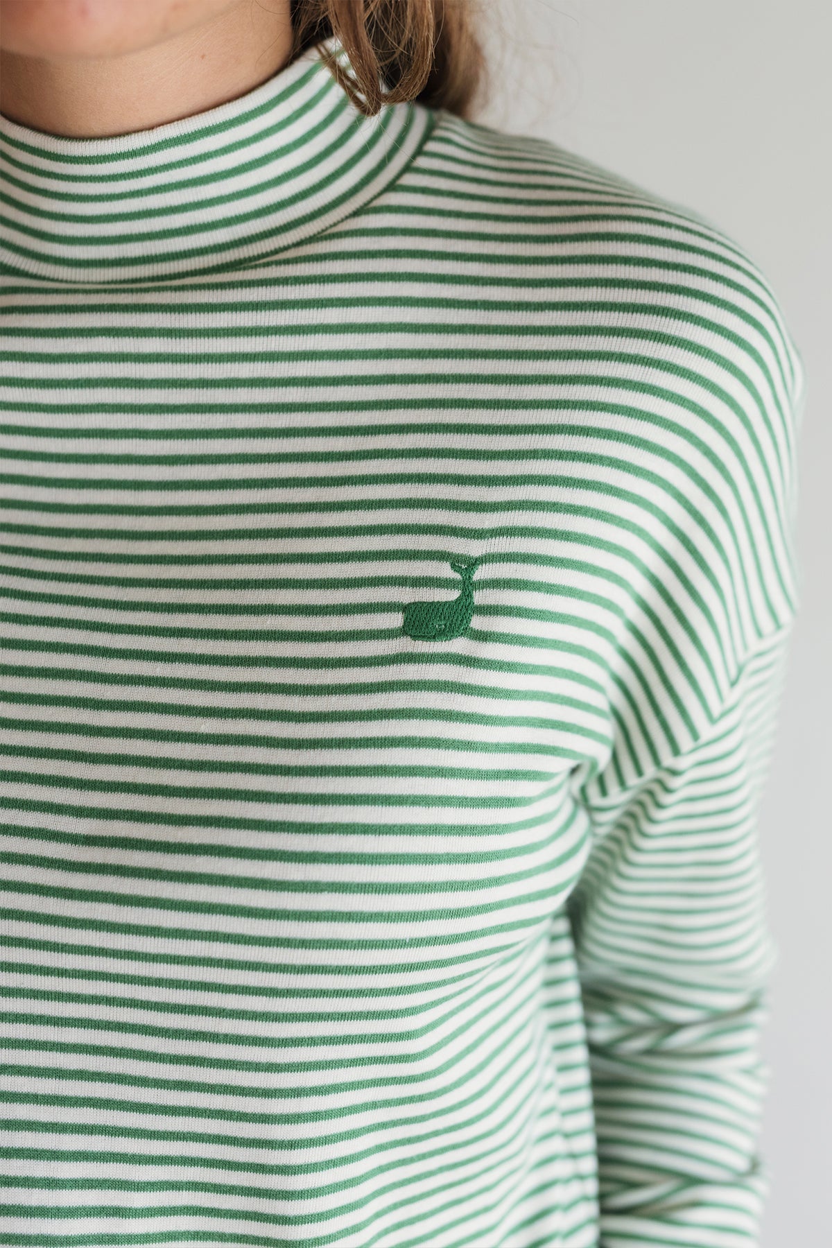 - Embroidered whale logo